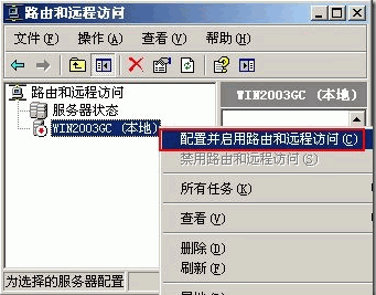 首先安裝“路由和遠程訪問”,或者在運行里輸入“rrasmgmt.msc”,在彈出的“路由和遠程訪問”管理控制臺窗口中,單擊配置并啟用路由和遠程訪問,如圖所示: