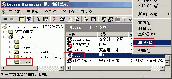 如果計算機加入了域,則單擊AD用戶和計算機中的user組中的用戶,如圖: