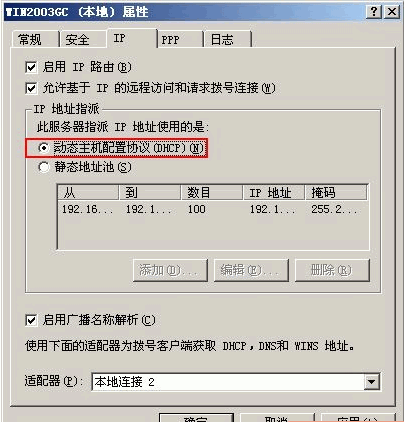 起始IP地址和結束IP地址可以自定義一段IP地址(如192.168.0.10至192.168.0.50)如這臺主機已經配置了DHCP服務,也可以選擇動態主機配置協議(DHCP),會延長連接時間。