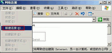 1. 桌面右擊網上鄰居->屬性,打開網絡連接。單擊新建連接,如圖所示: