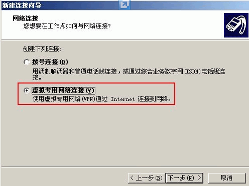 3. 選擇“虛擬專用網絡連接”,下一步;