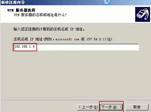 5. VPN服務器選擇中,選擇主機名或者IP地址,下一步;