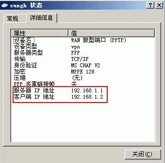 成功建立VPN連接以后,可以雙擊桌面右下角的VPN連接圖標查看其狀態,如圖所示;