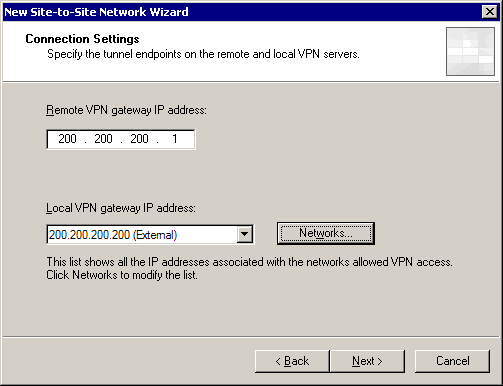 輸入D-link路由器的外部IP作為遠程VPN網(wǎng)關的IP,然后選擇ISA Server的外部IP作為本地VPN網(wǎng)關的IP,