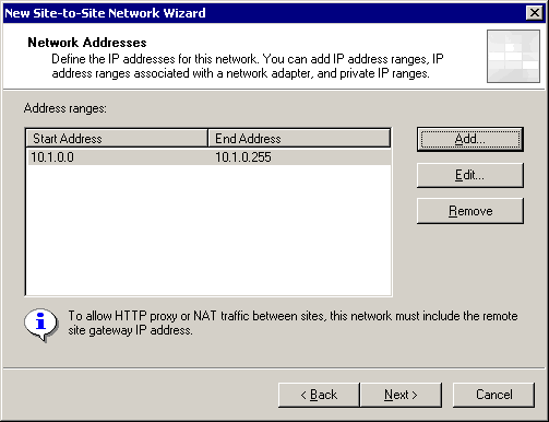 點擊Next,在下一個屏幕中,加入遠程VPN網(wǎng)絡的地址集: