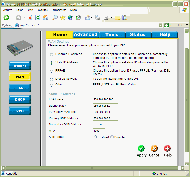 首先,進入D-link VPN路由器的管理界面,我是使用的靜態(tài)IP,如下圖:
