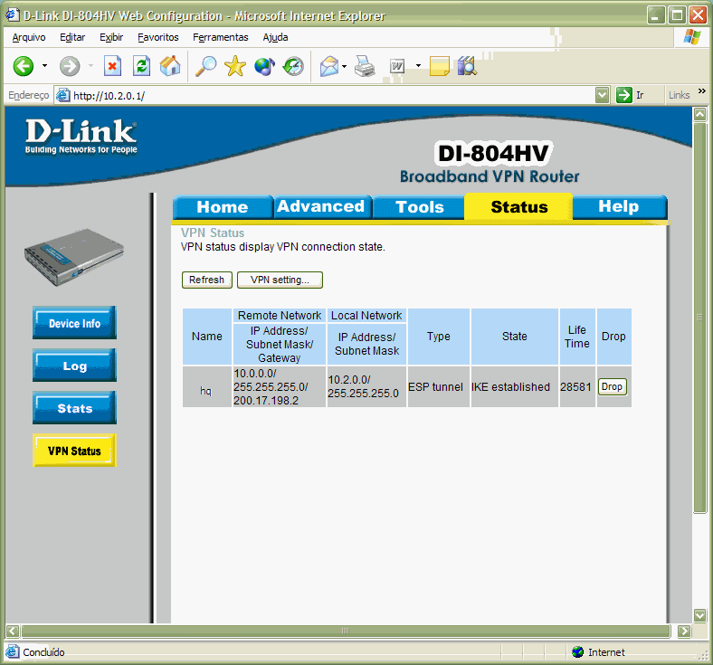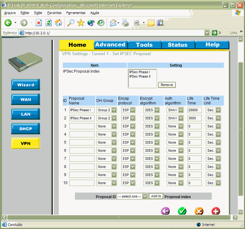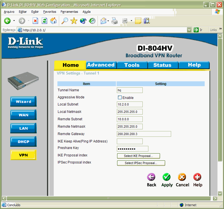 這個周末我通過配置一個D-link的DI-804HV VPN路由器使用IPSec