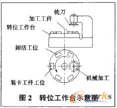 在機械制造過程中,輔助時間是影響工時定額的一個重要因素,應盡可能地使輔助時間與機械加工時間重合。比如我廠的上旁承加工工藝。如圖2所示,采用轉位工作臺,機床可連續進行加工,工人可同時進行工件的裝卸。