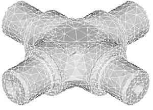 以上說明各公司的有限元軟件都能獨立完成有限元分析任務(wù)。當(dāng)然,上述各種軟件還提供了與多種CAD軟件的接口。一般來說,有限元軟件的建模功能不如專門的CAD軟件強大。只有將他們結(jié)合起來使用才能更好地發(fā)揮各自的功能。筆者在分析汽車傳動裝置零件十字軸的彎曲強度時,采取的路線是:先由Pro/E建立十字軸的幾何模型并完成網(wǎng)絡(luò)劃分,并以ANSYS文件格式.ans輸出模型,然后由ANSYS讀入該模型并完成后續(xù)分析。圖1為由Pro/E建模并劃分網(wǎng)格的十字軸模型。當(dāng)然,ANSYS也可直接讀入Pro/E的.prt文件,網(wǎng)格劃分及有限元分析的后續(xù)任務(wù)都由ANSYS完成。