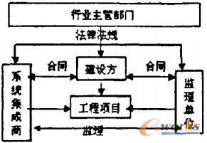 信息工程監(jiān)理制度的引入,使信息工程建設(shè)由二元結(jié)構(gòu)(即建設(shè)方和承建方)變?yōu)槿Y(jié)構(gòu)(見圖1)。形成建設(shè)單位、監(jiān)理方及承建方相互協(xié)作、相互制約的格局,有利于提高信息工程建設(shè)的質(zhì)量、保障工期、控制投資、增進(jìn)效益,促使我國信息化建設(shè)的健康發(fā)展。