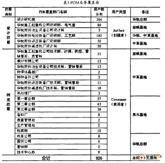 1)PDM業務覆蓋面:PDM業務覆蓋面如表3所示。