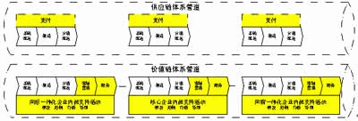 當企業采取縱向一體化戰略時,無論其是否是采用全向一體化,還是前向一體化或后向一體化,總之,其與供應鏈體系何其相似,事實上它就是一個以供應鏈為主體的體系結構(供應鏈體系就是在價值鏈體系誕生后發展起來的一種管理模式),只不過由于供應鏈所建立的體系是以物流和資金流為核心的體系,在其中有許多的內容并未存在,它遠不如價值鏈體系考慮的全面,因此在供應鏈體系中并未考慮成本管理、人力資源管理、研發管理、產品管理、價格管理等等許多非物流體系之內的內容,因此它還必須輔之以其它的管理體系,只有這樣才有可能依據企業戰略制定出有效的信息化戰略。要很好地獲得價值鏈體系與供應鏈體系之間的區別,必須要深入了解它們的異同,下圖是兩個不同體系間的比較。