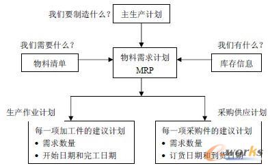 物料需求計劃(MRP-Material Requirement Planning)的對象:是非獨立需求類型的物料。一個產品可能有成百上千中非獨立需求型的物料,各自的生產和采購提前期不同,需用日期也不同。MRP就是編排好它們的生產和采購計劃,使其在需要的日期能夠配備齊全,滿足生產的需求,而在不需用的日期內又不要過量積壓,要做到這一點,物料的計劃參數要求就必須準確,特別是提前期,按物料的提前期,從需用日期算起倒排計劃,確定訂單下達日期和數量,生產和采購部門清楚每種物料的需求先后順序,從而做到有條不紊的安排生產和采購計劃。圖2是MRP的邏輯流程圖。