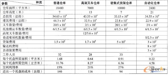 下面還可以參考法國計算的不同倉庫形式的比較(見表4)。