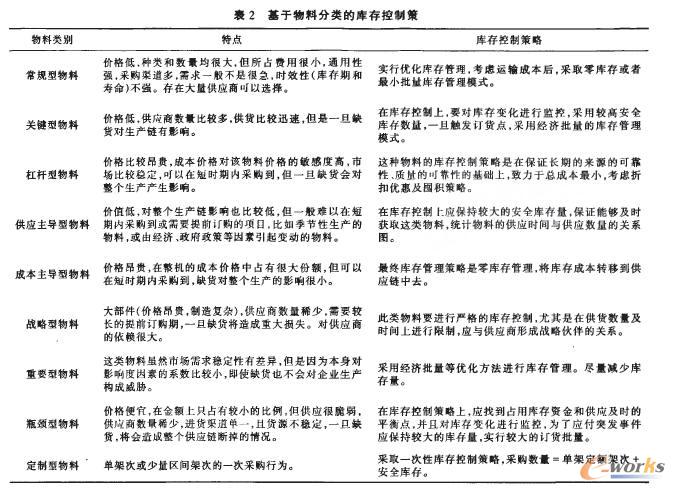 民機(jī)物料應(yīng)用庫存控制策略后,庫存管理人員的主要精力與工作只要集中在管理戰(zhàn)略型物料,及需要進(jìn)行庫存監(jiān)控的關(guān)鍵型物料和瓶頸型物料上,采購人員需注意杠桿型物料和供應(yīng)主導(dǎo)型物料的市場供應(yīng)狀況及趨勢,每一種物料都有明確的管理需求,而對于數(shù)量眾多,價(jià)格低廉,供應(yīng)穩(wěn)定的物料則由系統(tǒng)進(jìn)行管理與判斷,大大減少庫存管理的工作量,規(guī)范庫存控制的方法,優(yōu)化庫存結(jié)構(gòu)。針對民機(jī)的物料分類,不同的物料采用不同的庫存控制策略,見表2。