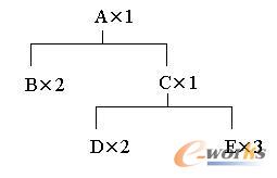 如上圖,成品A,是由二個(gè)原料B,及1個(gè)半成品C所組成,而半成品C則是由二個(gè)原料D及三個(gè)原料E所組成。依其組成關(guān)系,A為B、C的母件,B、C為A的子件;C為D、E的母件,D、E為C的子件。如果A之上再無母件,A可稱為成品,C為自制或委外的半成品,B、D、E則為采購(gòu)件,采購(gòu)件不可能是母件。A對(duì)B、C,或者C對(duì)D、E的上下關(guān)系,稱為單階。如果對(duì)整個(gè)結(jié)構(gòu)而言,上中下各階,稱為多階或全階。綜上所述,BOM就是或者說僅是表明物料的組成關(guān)系而已。