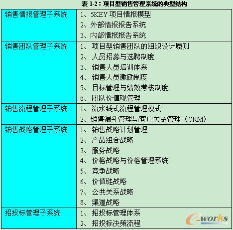 為了解決項目型采購的特殊性與傳統的銷售管理系統之間存在的矛盾,很多從事項目型銷售的大型企業,也包括很多跨國企業,都通過構建項目型銷售管理系統來管理項目型銷售團隊。下面就是項目型銷售管理系統的典型結構:
