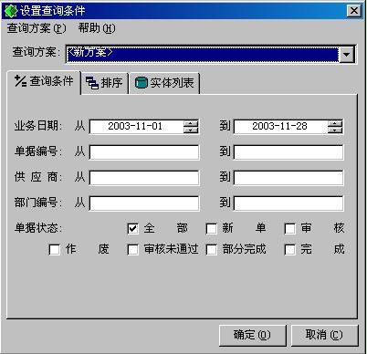 系統為檢驗提供了日期、單號、供貨商、部門、單據狀態幾個查詢條件,如下圖: