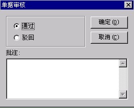 2. 審核:選擇一新單,然后點擊工具欄中的 或者菜單[業務\審核],系統彈出審核對話框。選擇‘通過’或‘駁回’,也可輸入批注,之后,按確定。