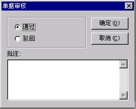 2. 審核:選擇一新單,然后點擊工具欄中的 或者菜單[業務\審核],系統彈出審核對話框。選擇‘通過’或‘駁回’,也可輸入批注,之后,按確定。