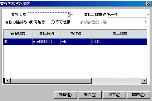 點擊新增審核流程菜單或工具條上的 按扭﹐進入如下界面如圖(4-1)