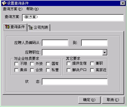 條件有:公司編碼、應(yīng)聘人員編碼、姓名、性別、出生日期、應(yīng)聘職位、學(xué)歷、專業(yè)、