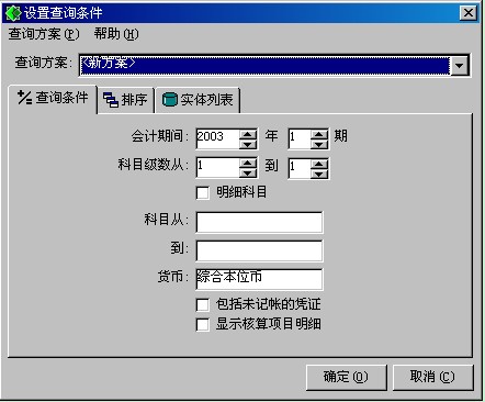 選擇要查詢的試算平衡表的會計科目級數,系統默認為一級科目。用戶可以維護。 |