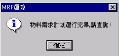 MRP計算功能是根據設定的計劃參數、物料資料、產品結構、生產或采購的預計入庫、