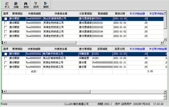 4、 手工核銷支持同一供貨商不同幣種的核銷。