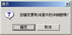 2、 反沖銷:在如圖3-30所示的界面上劭科,選取一條或多條沖銷流水,單擊菜單反沖銷,系統給 出圖3-32所示的提示,在提示界面上單擊確定,系統就取消此沖銷流水。