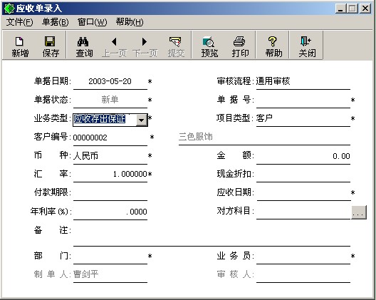 必錄項目。如果系統(tǒng)選定了付款期限,應收日期會自動給出。否則需要用戶手工錄入 |