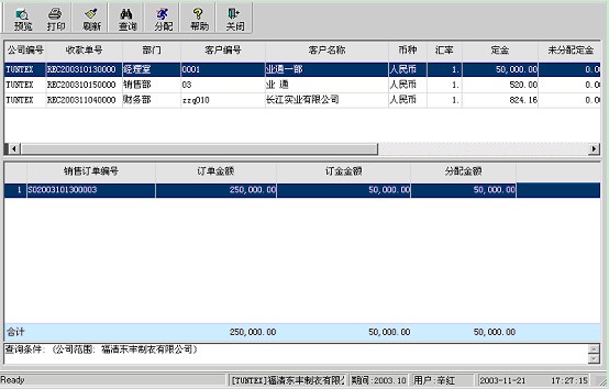 定金分配數據輸出的方式有兩種:另存為EXECL文檔、打印。詳見《單據打印設置手冊》。請參見《單據打印設置手冊》。