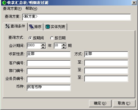 查詢方式有兩種:移至、查詢。查詢?nèi)鐖D4-6所示。界面上給出的查詢條件有查詢方式、會(huì)計(jì)期間、收款性質(zhì)、收款方式、客戶編號(hào)、發(fā)票編號(hào)、貨幣。系統(tǒng)默認(rèn)的查詢條件是按期間查詢、當(dāng)前期間、各種收款性質(zhì)、各種收款方式、所有客戶、所有部門、所有業(yè)務(wù)員、所有貨幣的收款情況。您可以將系統(tǒng)給出的查詢條件根據(jù)需要任意組合,得到您要的查詢結(jié)果,請(qǐng)參見《公共操作手冊(cè)》’中的相關(guān)內(nèi)容。