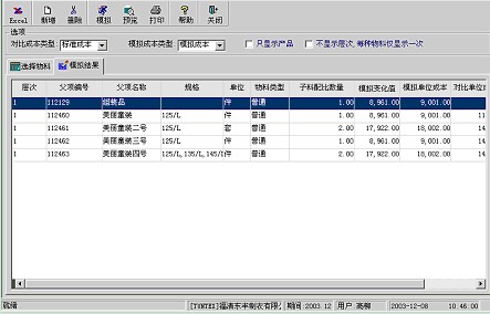系統(tǒng)分析時要模擬變化的成本類型,用戶應(yīng)修改模擬成本值,產(chǎn)生成本變化。 |