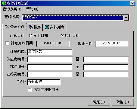 系統(tǒng)默認(rèn)的計息期間是從務(wù)業(yè)的應(yīng)付日期開始到載止日期止;計息范圍不包括已銷部分,只取賬面余額計息。