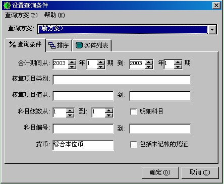 選擇要查詢的會計科目級數,系統默認為一級科目。用戶可以維護。 |