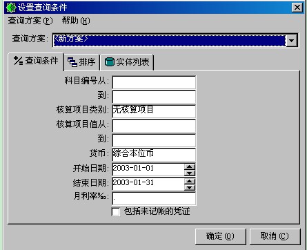在科目欄雙擊調出科目信息選取某個會計科目。系統默認值為所有的科目 |