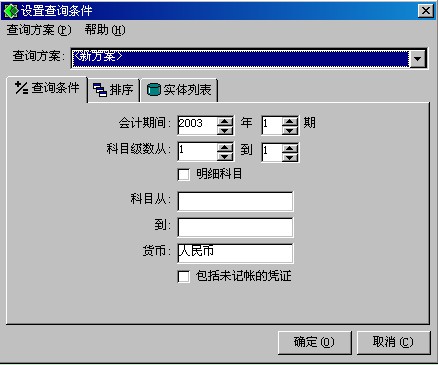 選擇要查詢的會計科目級數,系統默認為一級科目。用戶可以維護。 |