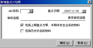 說(shuō)明:‘包括上期盤點(diǎn)為零,本期未發(fā)生業(yè)務(wù)的物料’如果未選中,則表示上次盤點(diǎn)時(shí)物料已為0,且至今未止未發(fā)生任何出入庫(kù)業(yè)務(wù)的物料,將被忽略,不產(chǎn)生在盤點(diǎn)計(jì)劃中。如果被選中,則包括了相應(yīng)的物料