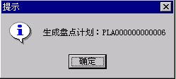 4. 按<確定>,系統(tǒng)自動(dòng)會(huì)根據(jù)指定范圍,查找出已超過(guò)盤點(diǎn)周期的物料記錄并形成新的盤點(diǎn)計(jì)劃。此時(shí)系統(tǒng)彈出如下窗口,表明已成功生成盤點(diǎn)表。