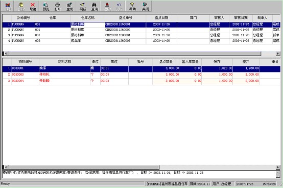 盤點完成后,系統自動生成盤點盈虧數,經過審批,系統就按盤點數對帳存進行調整,使實際數與帳存數保持一致.