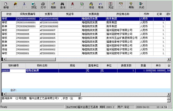 如果在系統管理中定義有審核流程則在錄入發票時必錄入,否則不錄入。 |