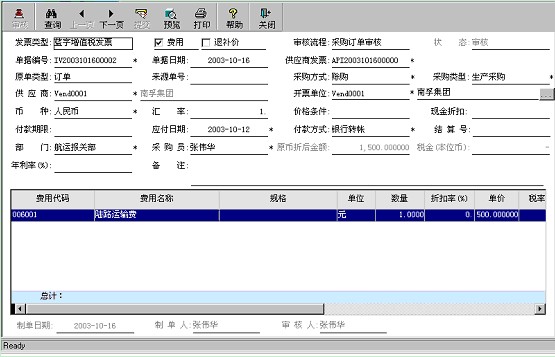 用戶可錄可不錄。如果錄入了折扣率在計算時系統會進行處理。此處錄入的折扣率是鐘對此發票的所有物料的。 |