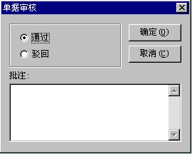 4. 審核:選擇一張新收貨單,點擊工具欄的 或菜單中的審核。出現如圖4-8所示的審核對話框,選擇‘通過’或‘駁回’,也可加上批注,之后按確定,回到收貨單管理界面,所選擇的收貨單狀態已經變成了‘審核’(選擇通過)或‘審核未通過’(選擇了駁回),審核完成。