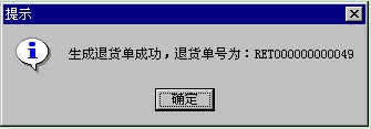 2. 彈出如下圖所示的窗口,表示已自動生成退貨單,可以在采購系統中的退貨單管理中看到此退貨單。