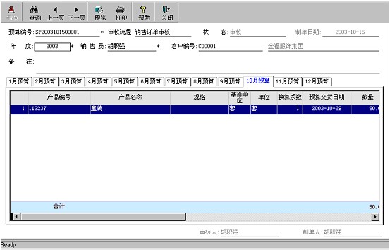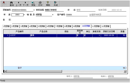 銷售預算錄入記錄企業根據銷售市場的情況和企業的銷售歷史的統計資料,制定企業未來銷售企業產品的銷售計劃,銷售預算管理對銷售預算進行審核、反審、修改、刪除等操作。
