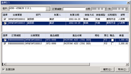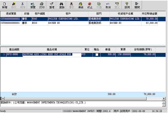 退貨的客戶﹐可手工錄入﹐或選擇 |